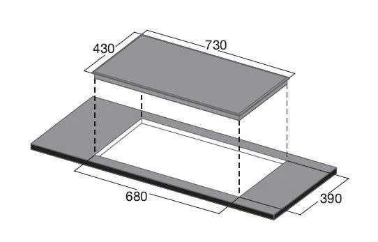 Kích thước khoét đá: 680x390mm