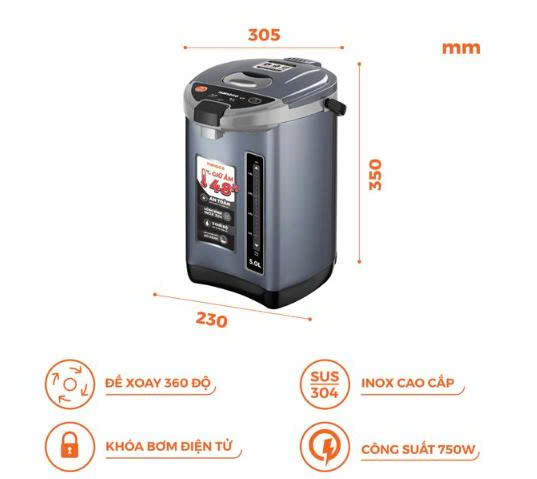 Bình thủy điện Nanoco model NETF500 dung tích 5L (Công suất 750W)