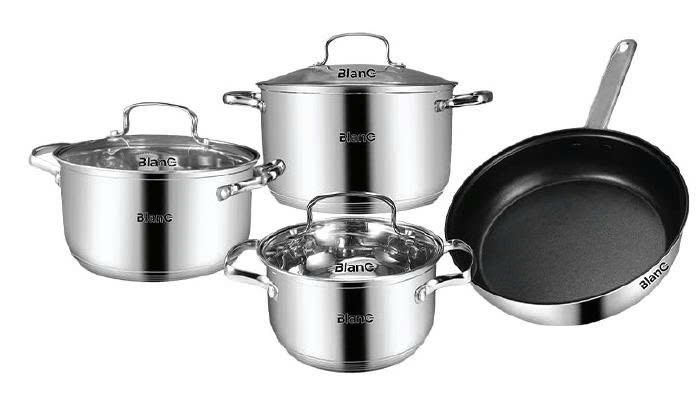 > Sản phẩm bao gồm 3 nồi có vung với các kích thước là 16x9.5 - 20x11.5 - 24x13cm và 1 chảo chống dính 24x65cm |
