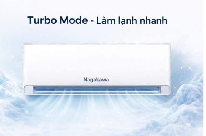 Điều hòa Nagakawa NS-C24R2U86 được trang bị chế độ làm lạnh nhanh Turbo, cho phép máy hoạt động ở mức công suất cao để nhanh chóng giảm nhiệt độ phòng. Khi kích hoạt chế độ này, điều hòa sẽ tăng tốc độ quạt gió và thổi luồng khí lạnh mạnh mẽ hơn.
