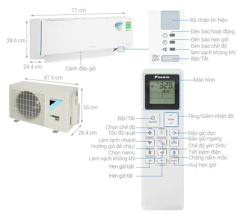 Với công suất 18000 BTU (2.0HP), máy điều hòa Daikin FTKF50YVMV lựa chọn lắp đặt cho căn phòng diện tích 25-30m2: phòng KHÁCH, phòng làm việc, văn phòng…