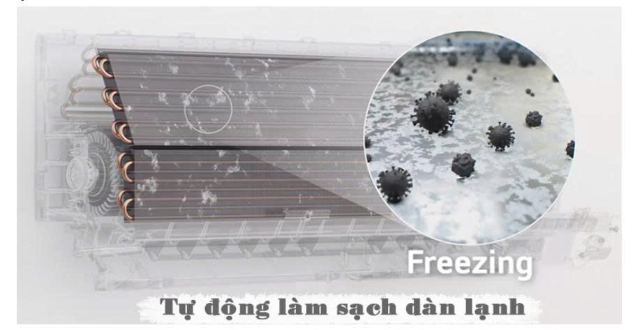 Dàn tản nhiệt được mạ vàng, chống ăn mòn vượt trội, giúp tăng tuổi thọ của máy và duy trì hiệu suất làm lạnh tối ưu.