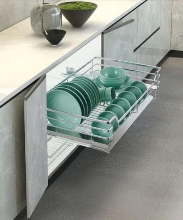 + Thiết kế thông minh giúp tăng diện tích lưu trữ cho không gian tủ bếp dưới và linh hoạt trong sắp xếp đồ dùng