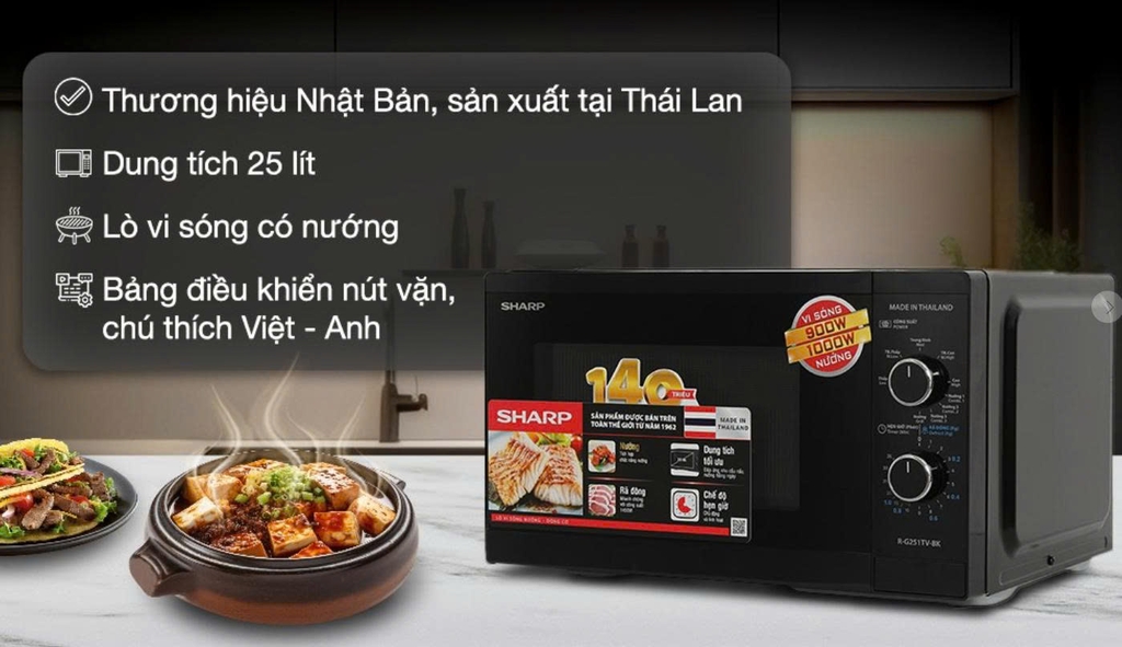 Lò vi sóng có nướng Sharp R-G251TV-BK 25 lít