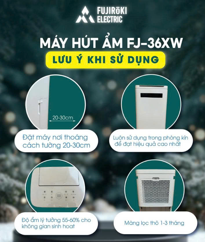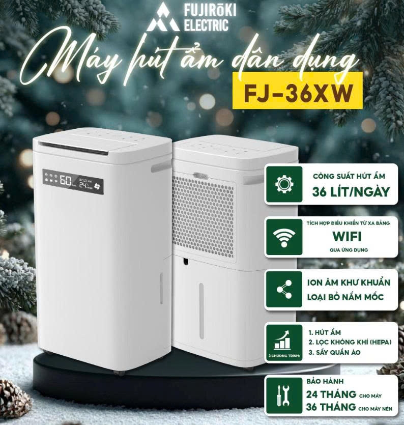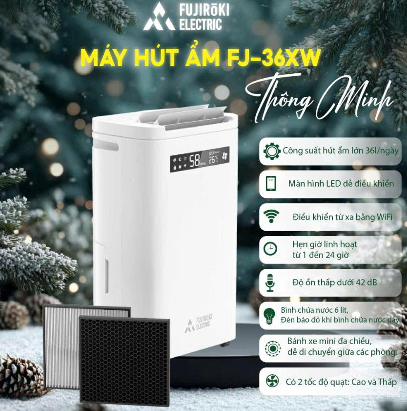 Fujiroki FJ-36XW là dòng máy hút ẩm và lọc không khí cao cấp, thiết kế hiện đại, hoạt động êm ái, mang lại không gian sống khô ráo, trong lành – đặc biệt phù hợp với thời tiết ẩm nồm miền Bắc Việt Nam.