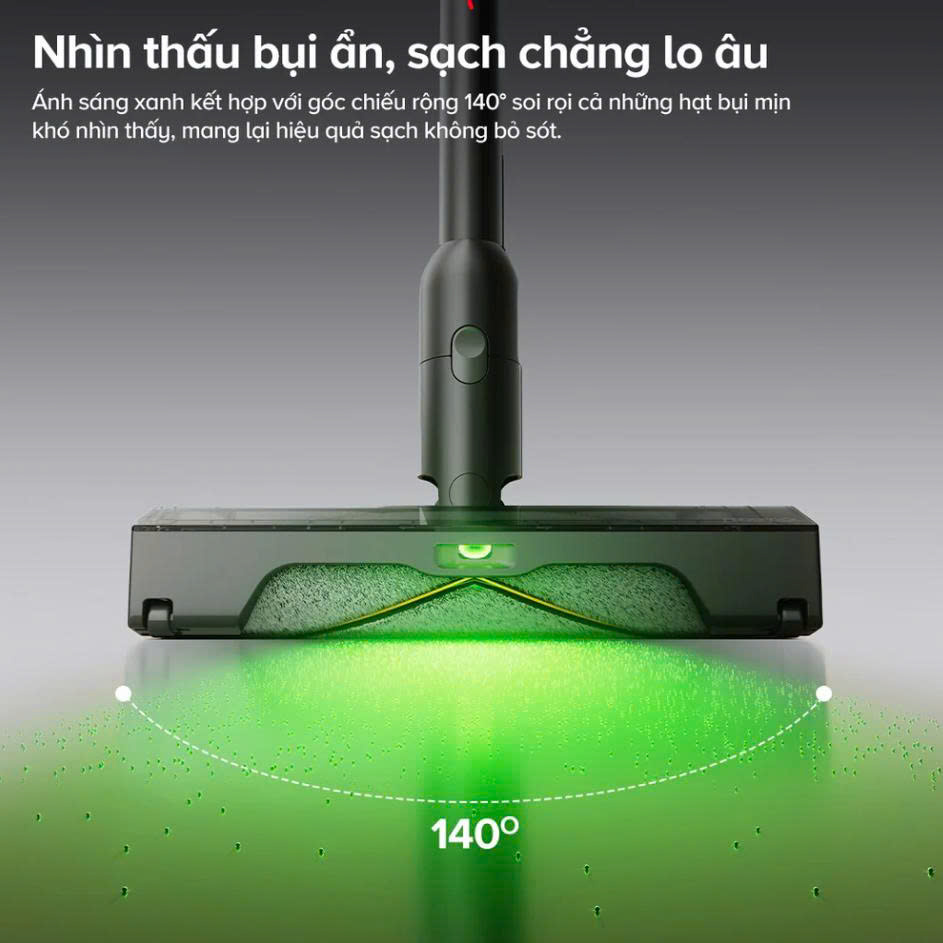- Tích hợp đèn chiếu ánh sáng xanh: Góc chiếu rộng 140°, giúp nhìn thấy và hút sạch cả những hạt bụi nhỏ khó quan sát