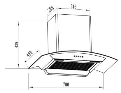 Kích thước lắp đặt sản phẩm | Máy hút mùi áp tường kính cong Inox 70cm Faster FS CH370S