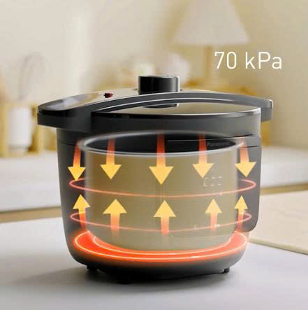 Nồi áp suất điện Panasonic NF-PC400KRA có công suất 800 W cùng mâm nhiệt lớn giúp nấu thức ăn nhanh chín, tiết kiệm thời gian. Phương pháp nấu áp suất cao lên đến 70 kPa giúp món ăn chín mềm và hương vị đậm đà hơn, đảm bảo nấu nhanh mà vẫn giữ được tối đa hương vị và chất dinh dưỡng.