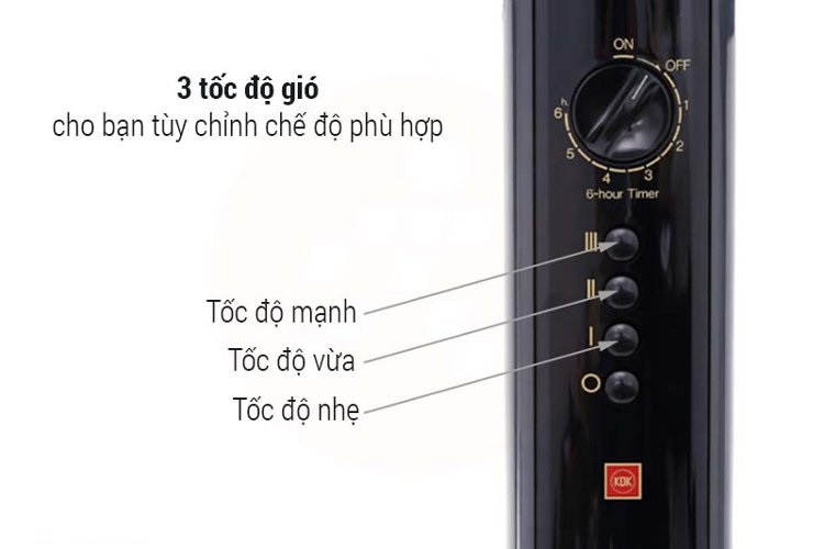 Quạt cây KDK P40V có khả năng hẹn giờ tối đa 6 tiếng, giúp người dùng có thể dễ dàng quản lý thời gian sử dụng. Chức năng hẹn giờ của quạt điện P40V sẽ giúp bạn có một giấc ngủ sâu hơn nhờ không phải thức giấc giữa chừng để điều chỉnh nhiệt độ. Chức năng này còn rất hữu dụng khi bạn ra ngoài mà quên không tắt quạt. Cơ chế hẹn giờ tự ngắt của quạt đứng dân dụng KDK sẽ giúp gia đình bạn tiết kiệm điện năng một cách đáng kể.