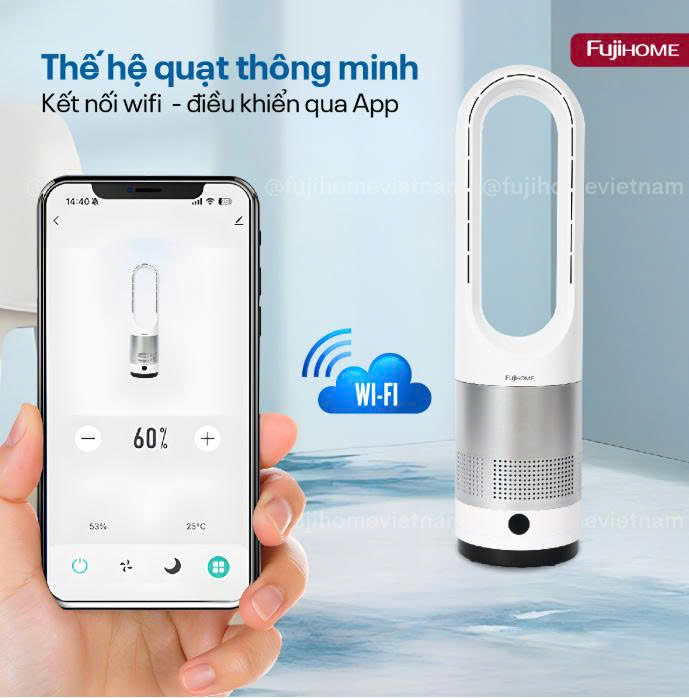 Một trong những điểm nổi bật của quạt Fujihome BF18 là khả năng kết nối Wifi, cho phép người dùng điều khiển quạt từ xa qua ứng dụng điện thoại. Không cần đứng dậy điều chỉnh thủ công, bạn có thể thay đổi tốc độ gió, chế độ hoạt động, hẹn giờ chỉ bằng một cú chạm trên smartphone.