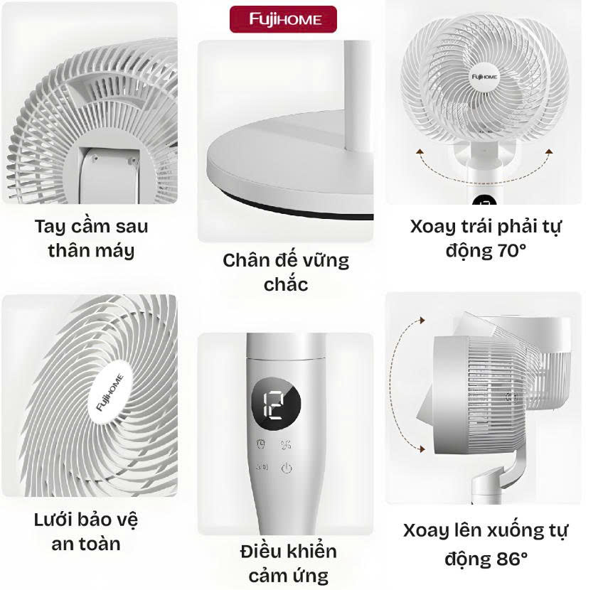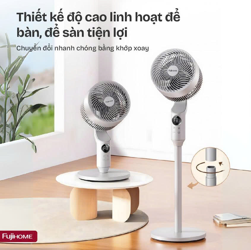 Không chỉ hoạt động độc lập, Fujihome CF201 còn là trợ thủ đắc lực cho máy điều hòa nhiệt độ. Bằng cách luân chuyển không khí lạnh đều khắp không gian, quạt giúp tăng hiệu suất làm mát của điều hòa, giảm gánh nặng cho máy lạnh và từ đó tiết kiệm điện năng đáng kể. Đây là lựa chọn tối ưu cho các căn hộ chung cư, văn phòng làm việc hay các khu vực cần làm mát rộng nhưng không muốn lắp đặt nhiều thiết bị công suất lớn.