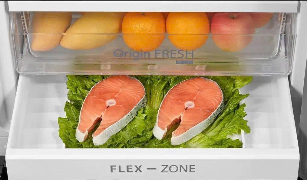 Tủ lạnh Toshiba GR-RB410WE-PMV(37)-SG thiết kế ngăn đông mềm Flex-zone linh hoạt -1°C giúp bảo quản thịt cá, hải sản tươi 3-4 ngày mà không cần rã đông, hương vị thực phẩm vẫn được giữ nguyên, trọn vị, dễ dàng chế biến nấu nướng mà không cần thời gian đợi chờ rã đông.